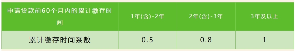 靈活就業(yè)人員單獨(dú)申請(qǐng)公積金貸款的,最高貸款限額的計(jì)算方式為:本市個(gè)人公積金最高貸款額度×累計(jì)繳存時(shí)間系數(shù)(見(jiàn)下表);兩人以家庭為單位申請(qǐng)公積金貸款的,最高貸款限額為兩人的個(gè)人公積金最高貸款限額相加。
