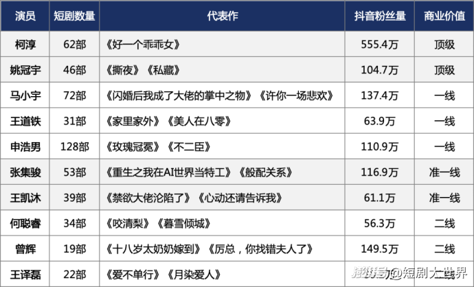 (2025短劇男演員核心數(shù)據(jù)對比 | 短劇大世界整理)