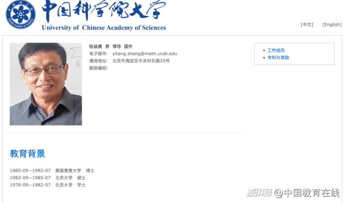 在張益唐擔(dān)任中國(guó)科學(xué)院大學(xué)博導(dǎo)的個(gè)人簡(jiǎn)歷中,他在工作簡(jiǎn)歷部分,將自己1992年8月至1999年7月在快餐店賽百味打零工的經(jīng)歷寫入,而在此之前,他在美國(guó)普渡大學(xué)讀博士。1999年11月后進(jìn)入美國(guó)新罕布夏大學(xué),擔(dān)任講師,2013年6月晉升教授,2016年1月轉(zhuǎn)任美國(guó)加州圣塔芭芭拉大學(xué)教授,直到此番回國(guó)。