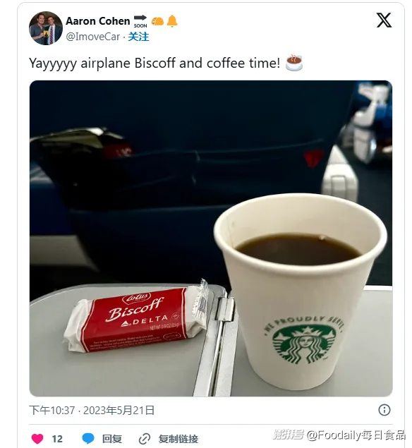 Thrillist、Islands、SimpleFlying等多家媒體提到,美國食品經(jīng)紀人邁克爾·麥奎爾在歐洲旅行時邂逅了Biscoff和咖啡的搭配,非常喜歡,于是將Biscoff推薦給了達美航空。