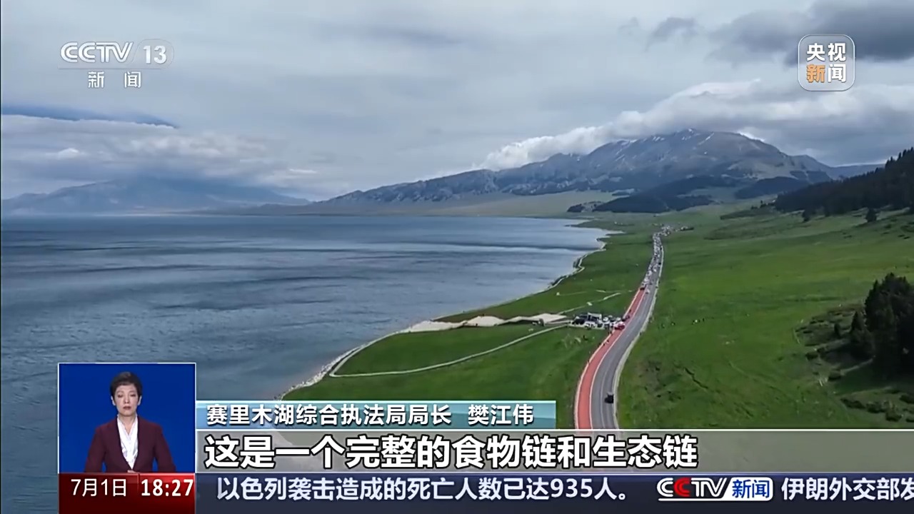 賽里木湖真的變臟了嗎?為了還原真相,總臺記者來到賽里木湖,看到蔚藍(lán)的湖面上,的確出現(xiàn)了多處“黃色泡沫”。