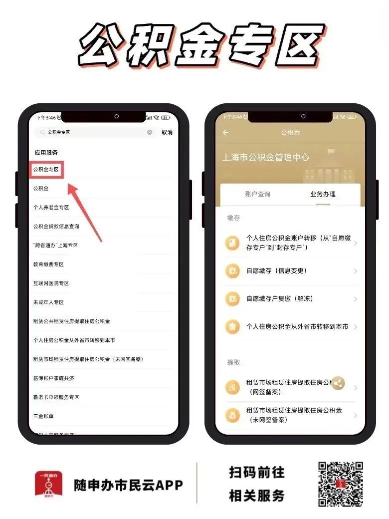““隨申辦市民云”APP:公積金服務(wù)進(jìn)行查詢。