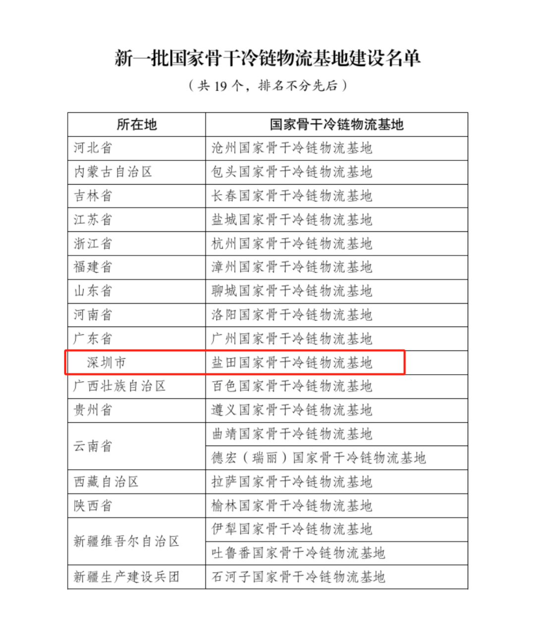 鹽田等19個國家骨干冷鏈物流基地