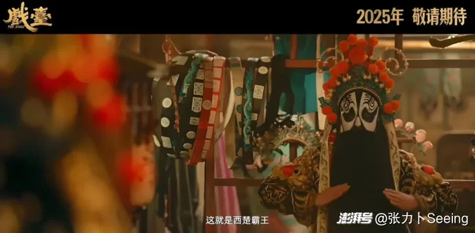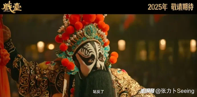 視覺語言的層次化,體現(xiàn)了導(dǎo)演對電影空間的獨特思考。陳佩斯與攝影指導(dǎo)趙小丁合作,設(shè)計了“三幕式”視覺方案:第一幕采用暖黃色調(diào)與對稱構(gòu)圖,模仿中國傳統(tǒng)卷軸畫的美學(xué),展現(xiàn)戲班后臺的秩序感;第二幕隨著軍閥闖入,畫面轉(zhuǎn)為冷藍色調(diào),大量使用傾斜構(gòu)圖和手持攝影,營造權(quán)力入侵的混亂感;第三幕荒誕演出時,色彩趨于飽和,燈光采用戲曲舞臺的頂光設(shè)計,將現(xiàn)實與戲劇空間壓縮在同一畫面。這種視覺變化并非簡單的風(fēng)格化處理,而是與劇情發(fā)展形成精密呼應(yīng),當侯班主被迫修改《霸王別姬》臺詞時,鏡頭從俯拍逐漸轉(zhuǎn)為仰拍,暗示權(quán)力關(guān)系的逆轉(zhuǎn)。影片對“鏡面”意象的運用,化妝鏡、水碗、軍閥的墨鏡等反光物體反復(fù)出現(xiàn),既象征著角色身份的多重性,也隱喻著歷史與現(xiàn)實的關(guān)系。