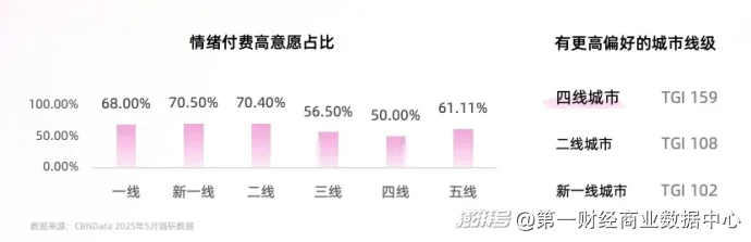與此同時,常年處于負壓狀態(tài)的人們,對積極情緒的需求也逐漸膨脹。超過36%的人認為情緒健康至關(guān)重要,值得用心力和金錢去投資。超半數(shù)人群目前已形成情緒消費支付意愿,而且這種趨勢還在由高線城市向低線城市延伸。