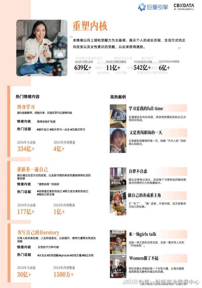 不少群體對重塑內(nèi)核表達出渴望,尤其是三四線城市的在校大學生、一線城市的寶媽等。面臨學習、生活的各項壓力,這個群體更習慣通過自律學習、勇敢挑戰(zhàn)來提升自我,進而開拓人生的可能。