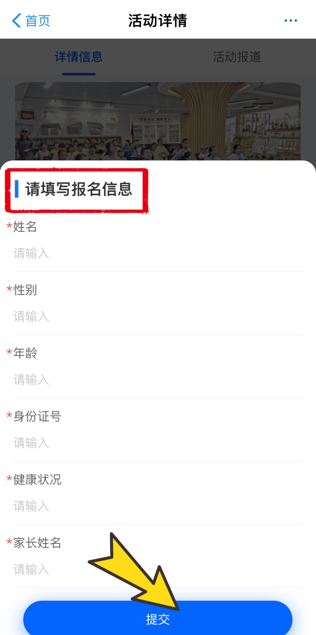 4.按照提示填寫報(bào)名信息并點(diǎn)擊“提交”。報(bào)名成功后,可選擇“繼續(xù)報(bào)名”或“撤銷報(bào)名”,待工作人員審核后即可確定報(bào)名情況。