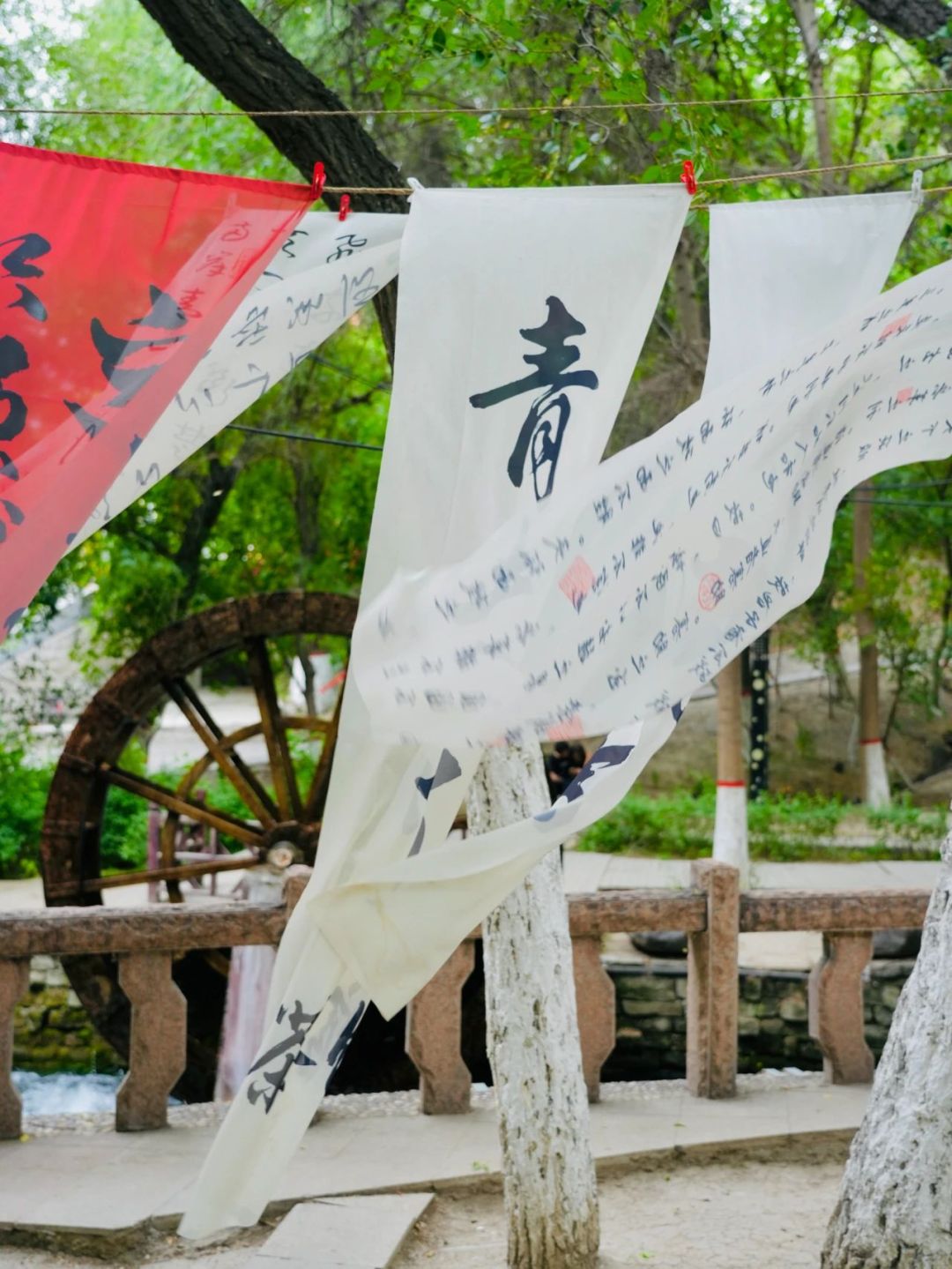 沿著流水行至清泉寺旁,仿古水磨坊木輪仍在轉(zhuǎn)動,青未了茶館便臥在溪畔松影里。