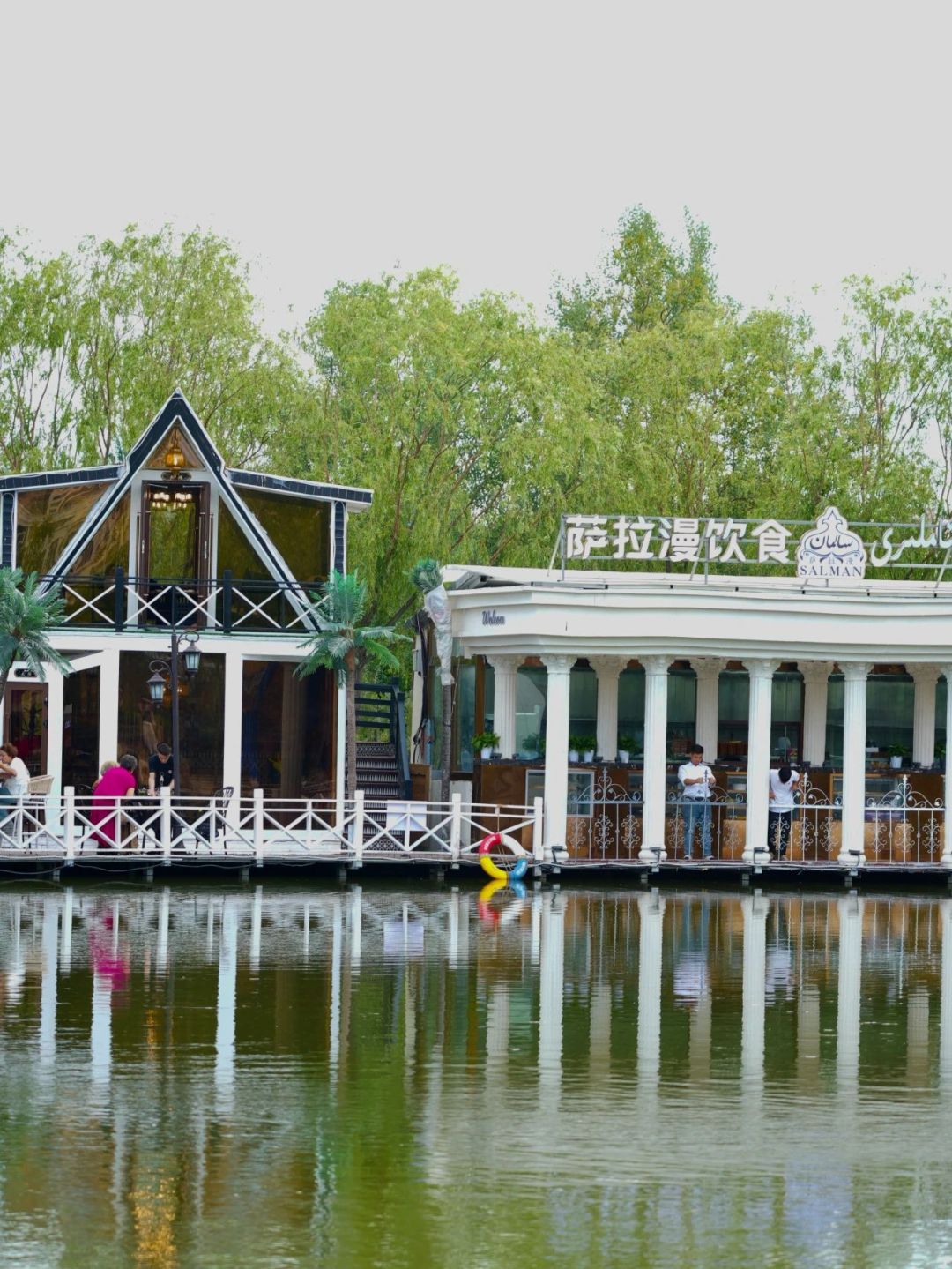 湖心托著一座花園餐廳,逛得腿乏時,拽上好友鉆進這朵“蓮心”。