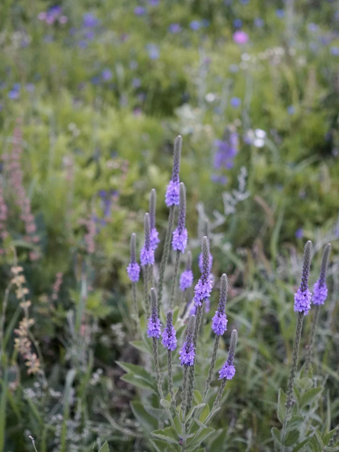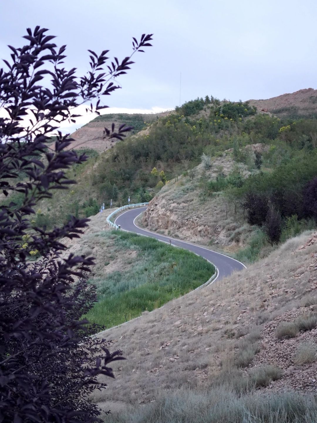 本運(yùn)動(dòng)菜鳥自然選了柏油馬路,看了看時(shí)間 6:10 開始行進(jìn)。一路上遇見零零散散騎行、徒步的朋友,但大家都很安靜,倒是山路上的鳥兒更顯歡脫。山花、芨芨草也不時(shí)出現(xiàn),野趣和變幻的天色一齊出現(xiàn),人變得輕快。