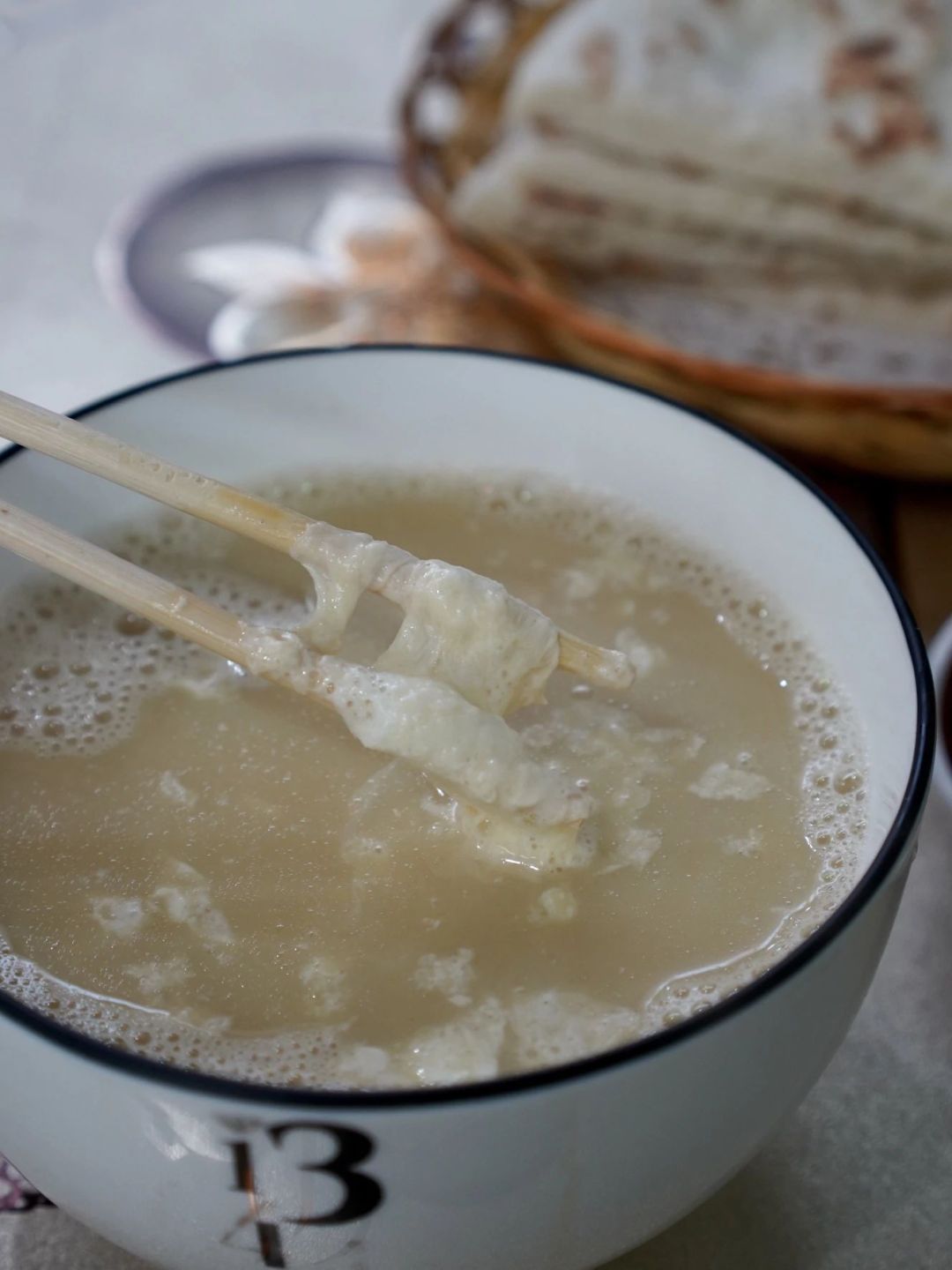 再來一碗奶茶,浮著一層奶皮子。咸味托起奶香,就著餅子喝下時(shí),更香、更醇厚。