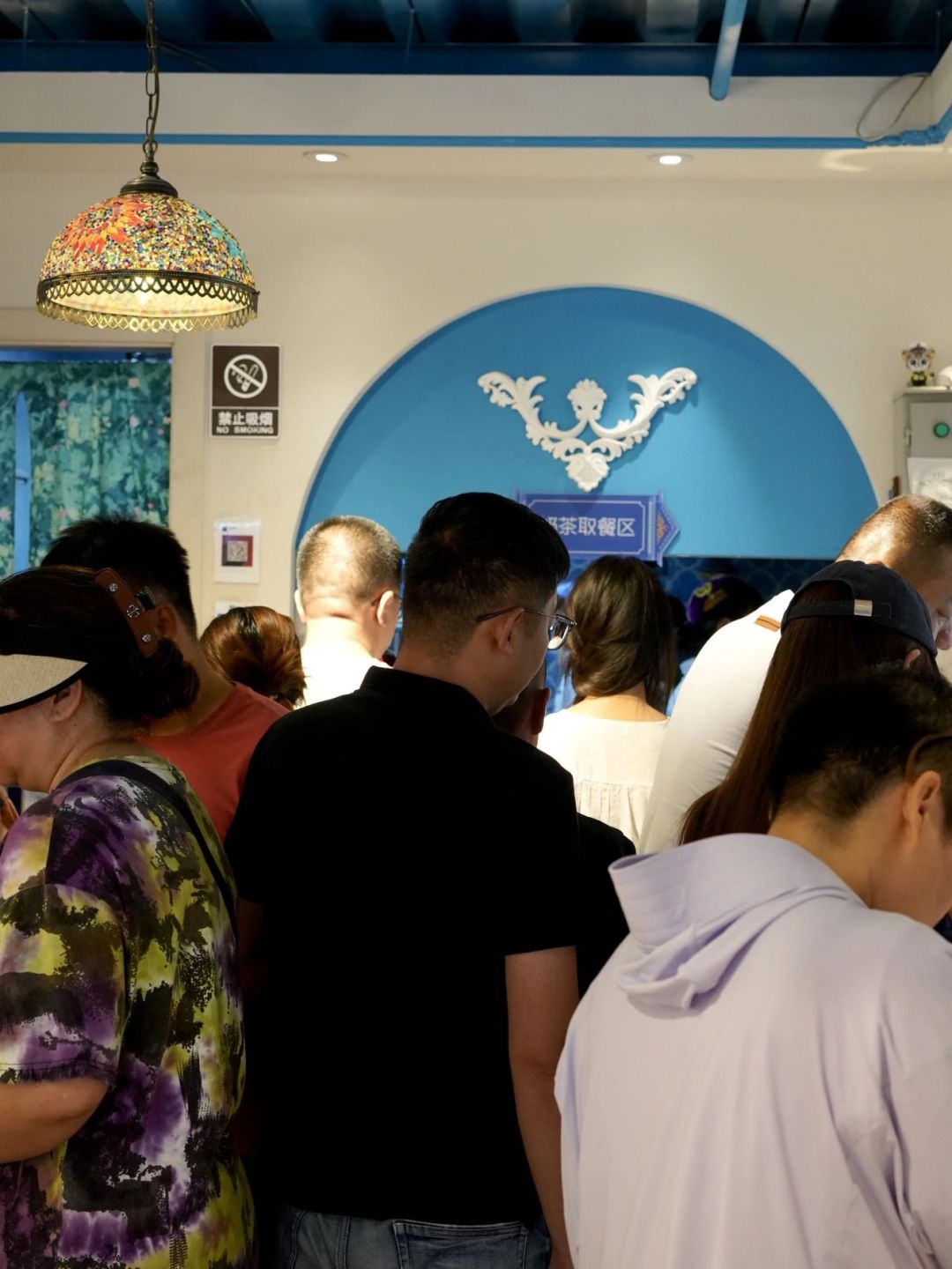 外擺區(qū)坐得滿滿當(dāng)當(dāng),排隊(duì)的客人也從柜臺(tái)延伸至門口。