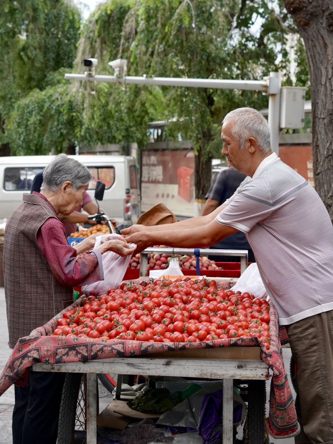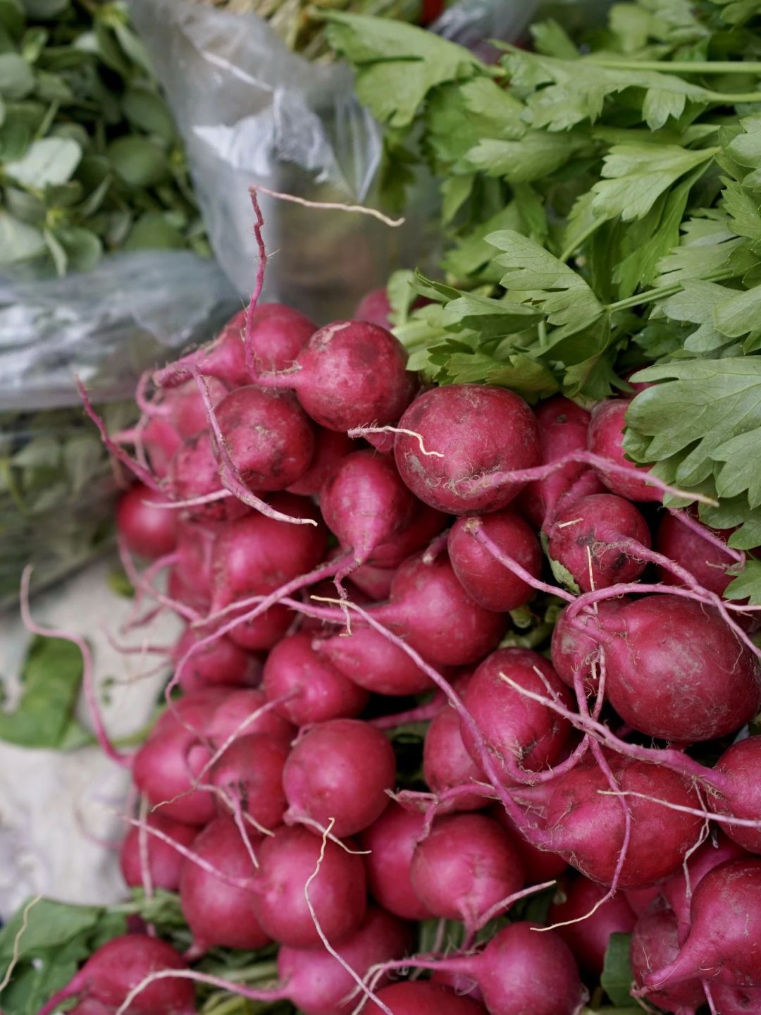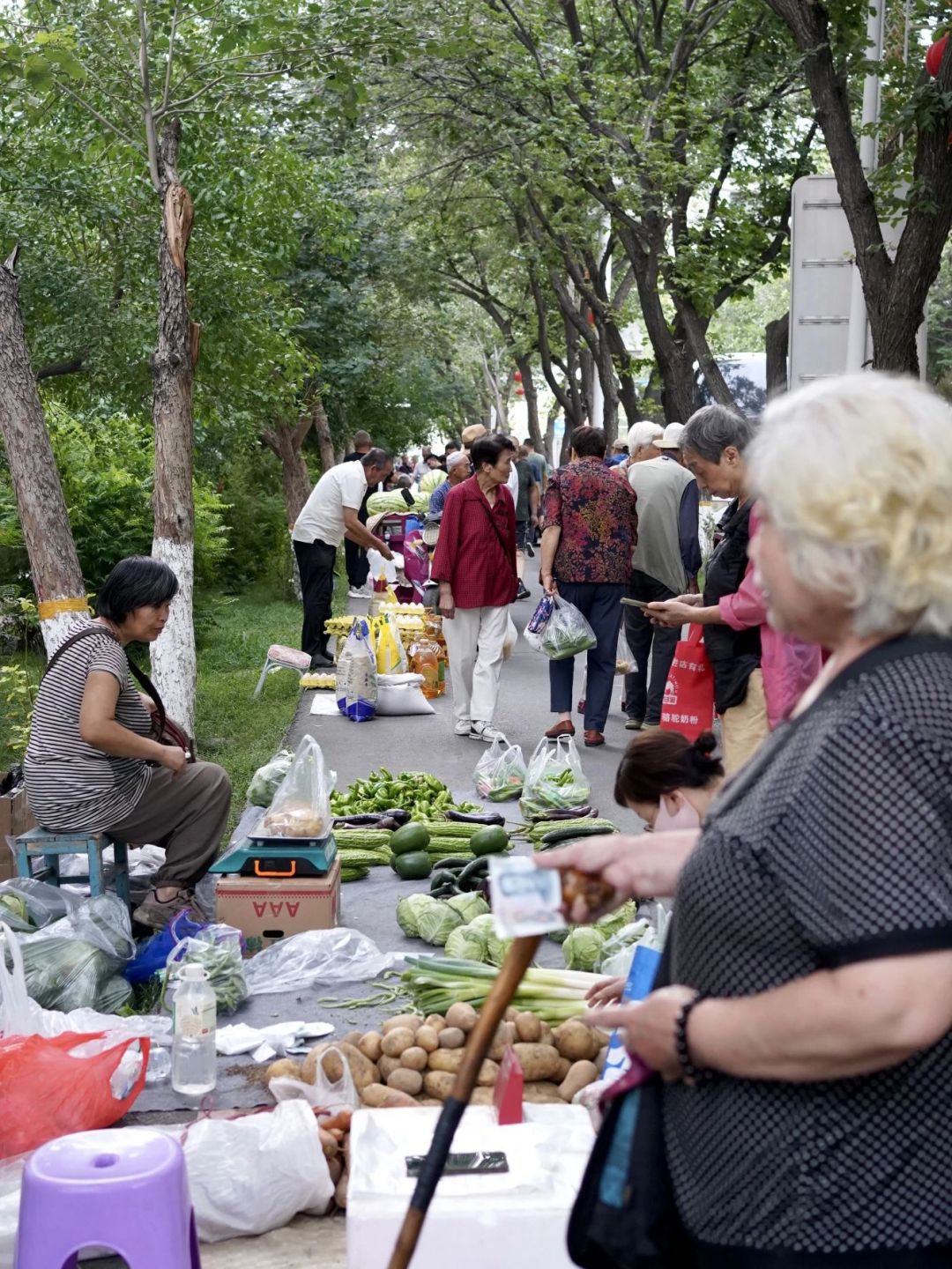 來逛的更多是住在附近的本地人,爺爺奶奶輩兒的居多,拉著推車誓要把頭茬鮮貨都帶回家。