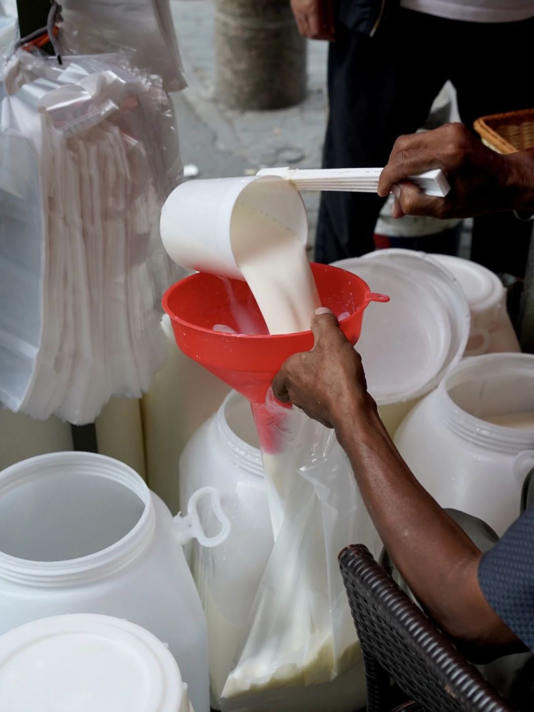 變化之二,在于早市上的貨。針頭線腦少了,更多的是水果、蔬菜還有新鮮的牛奶。