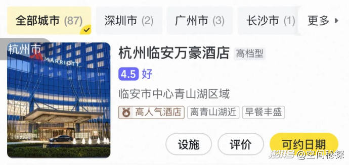 在高星級(jí)領(lǐng)域,酒店集團(tuán)旗下的各種品牌出現(xiàn),商家入駐的品牌效應(yīng)開始顯現(xiàn),類似杭州JW萬(wàn)豪酒店、杭州錢江新城萬(wàn)豪酒店等萬(wàn)豪旗下的酒店品牌,都?xì)w屬于萬(wàn)豪國(guó)際集團(tuán)旗艦店中,進(jìn)入旗艦店的直播間,發(fā)現(xiàn)更多酒店套餐選擇。如萬(wàn)豪集團(tuán)三晚加雙份早餐,僅1599元,換算下來500元/晚左右,有常州金壇萬(wàn)豪酒店、杭州臨安萬(wàn)豪酒店等酒店選擇,不過套餐時(shí)間段限制在暑期。其他OTA平臺(tái)上并沒有套餐價(jià),常州金壇萬(wàn)豪酒店在攜程和美團(tuán)上工作日的價(jià)格接近600元/晚,沒有飛豬優(yōu)惠。