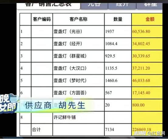 據(jù)“芒果愛晚”視頻報(bào)道,壹盞燈被曝出拖欠多家供應(yīng)商貨款,金額超過千萬元人民幣。受影響的供應(yīng)商包括豬肉供應(yīng)商、酒水糧油供應(yīng)商等,其中供應(yīng)酒水糧油的胡先生透露,僅其一家就被拖欠了160多萬元。
