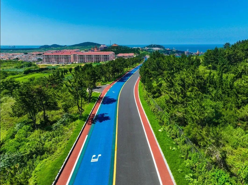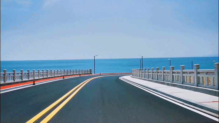 公路的一側(cè)是生機勃勃的綠色植被,另一側(cè)是波光粼粼的藍色海岸,頭頂上還有亞洲最長的跨海索道。當你駕車以40km/h的速度駛過公路時,BGM便會從車輪下緩緩響起。