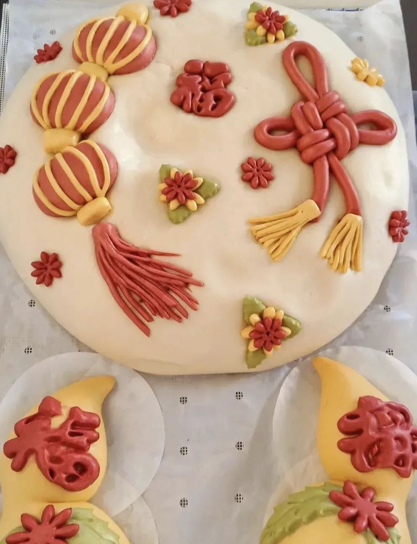 用南瓜泥、菠菜汁染色的“膠東小蛋糕”——花餑餑,不僅能當主食,還能當伴手禮,咬開是發(fā)酵面團的微甜,帶著點漁家的巧思。