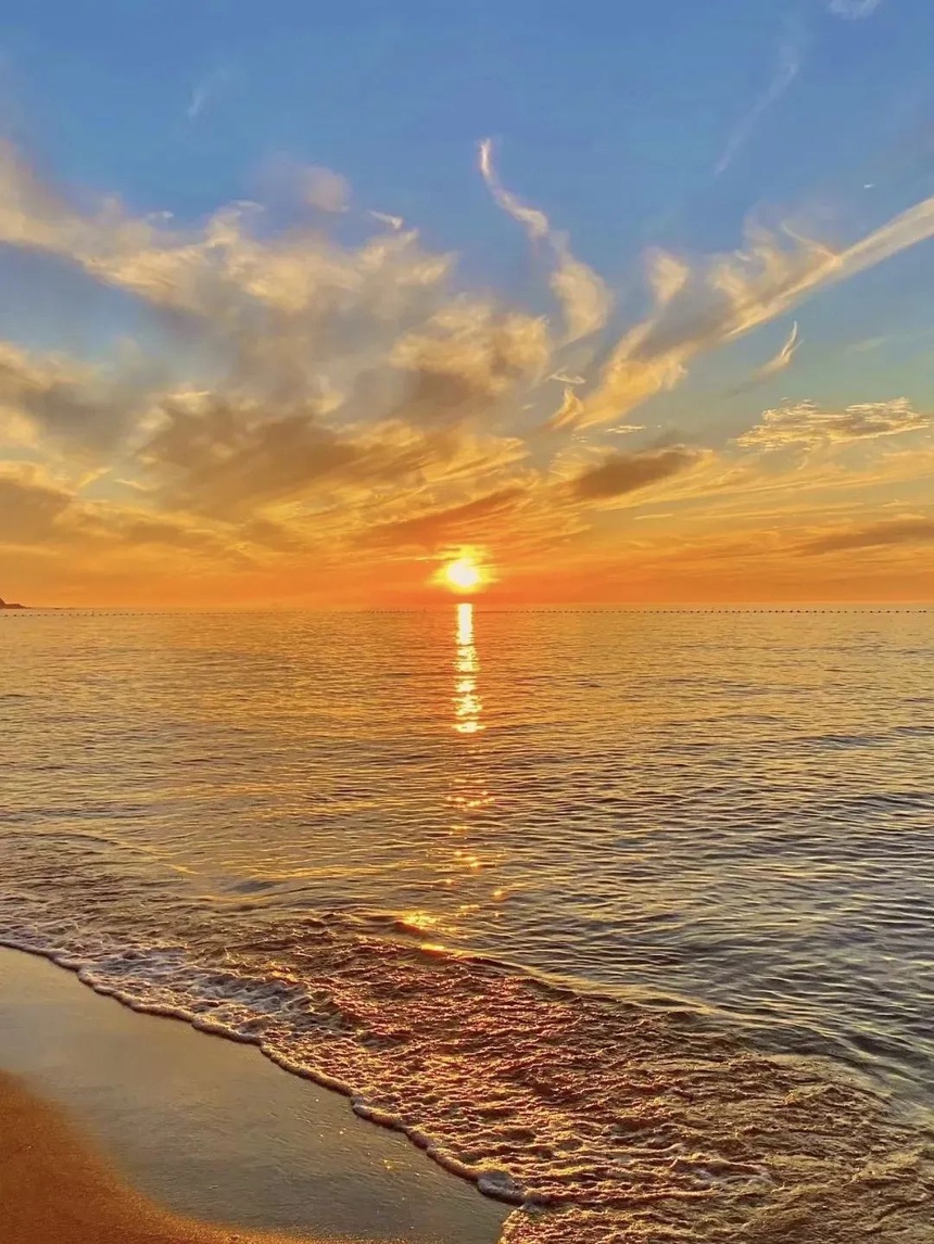 當朝陽漫過晨霧,那香海的沙灘正接住第一縷碎金。
