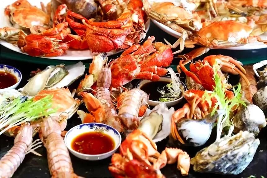 最地道的吃法是“一鍋蒸”:底層鋪海帶,中層碼扇貝、海蠣子,頂層臥只梭子蟹,蒸汽裹挾著咸香漫出來時,連蘸料都是多余。