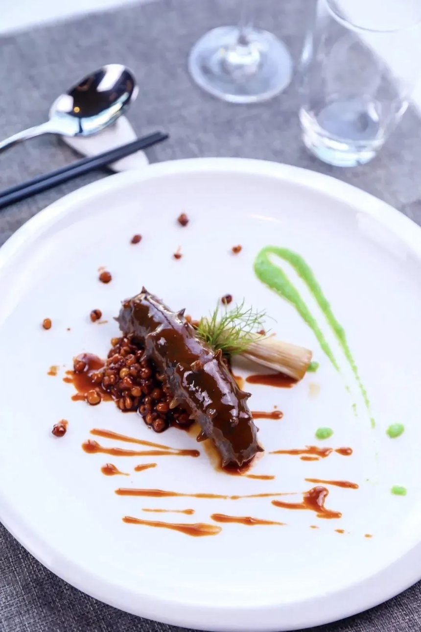 養(yǎng)在深海冷水域的海參,肉質(zhì)緊實得像藏著海浪的韌勁。蔥燒時,醬汁順著褶皺滲進去,咬開是軟糯里帶點彈牙;刺身更絕,蘸少許辣根,Q彈的肌理在舌尖打滑,仿佛把大海的鮮活含在了嘴里。