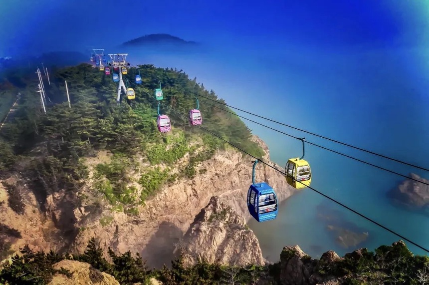 摩天嶺索道往返3000米,是亞洲最長的一條跨海索道。