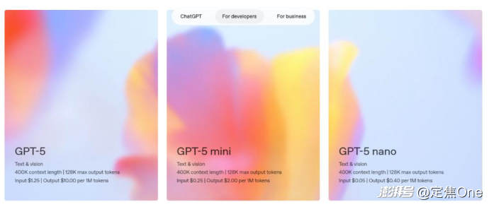 GPT-5包含GPT-5、GPT-5 mini、GPT-5 nano三個(gè)模型,API調(diào)用價(jià)格分層設(shè)置,最低的是GPT-5 nano,每百萬輸入token為0.05美元、輸出為0.40美元,比GPT-4最便宜的模型還要低。相比老對(duì)手也有很大優(yōu)勢(shì),GPT-5的調(diào)用費(fèi)僅為Claude Opus 4的十二分之一。