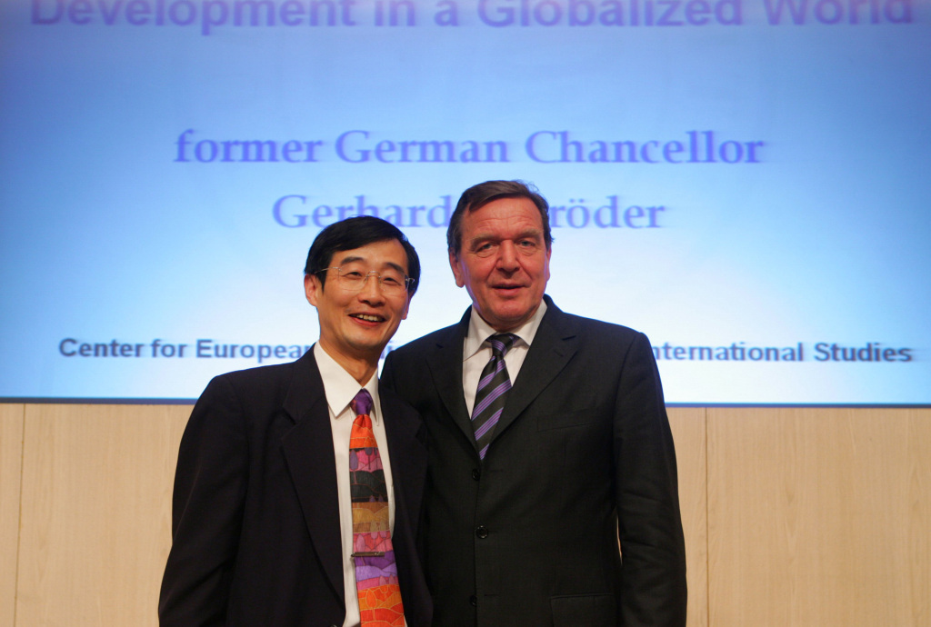工作原因,除了學(xué)者交流互動外,我還有機(jī)會面對面接觸多位包括德國總統(tǒng)、荷蘭首相、波蘭總統(tǒng)等歐洲國家政要以及歐盟外交官,感受到他們對中歐關(guān)系的高度重視,也體會到他們各自不同的行事風(fēng)格和個性特征乃至人格魅力。作為“統(tǒng)一總理”的科爾,不茍言笑,但氣場強(qiáng)大。話也不多,但每一句都切中要點。對中餐似也頗為喜歡,記得當(dāng)時他在嘗了一口紅燒肉后,大為贊許,詢問是否還有,接著吃了第二塊;以睿智和獨(dú)具戰(zhàn)略眼光著稱的施密特來訪時已經(jīng)88歲高齡,但思維依然十分活躍,談話富于哲理,對中國改革開放道路的充滿贊賞。他特別愛抽煙,吃飯時,一直在交談和抽煙,卻很少動筷;與施密特、科爾相比屬于年輕一代德國(歐洲)政治家的施羅德則給我留下了深刻印象,他善于和重視與人交流待人接物非常具有親和力,三言兩語就能拉近與對話者的距離,交談和演講時也講英語,和他的司法部長葛梅琳教授一樣,對中國的友好溢于言表。