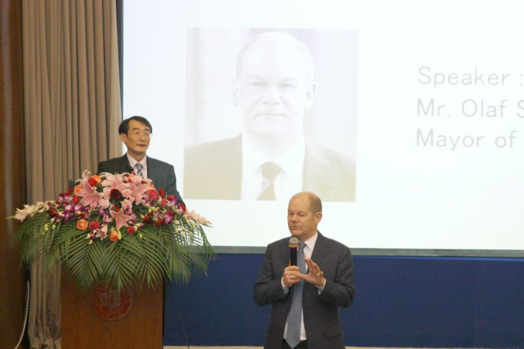 2015年主持朔爾茨(時任漢堡市長)在復(fù)旦演講。