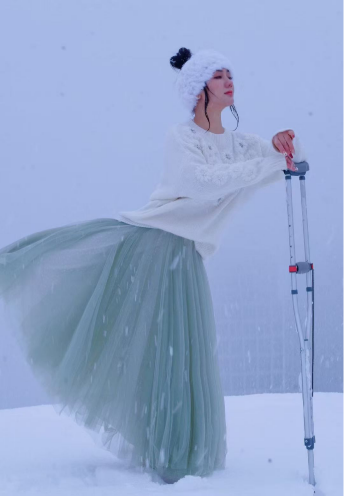 待第二場雪的時候,她已然能行動了,于是她要求朋友們帶她去樓頂天臺觀雪。