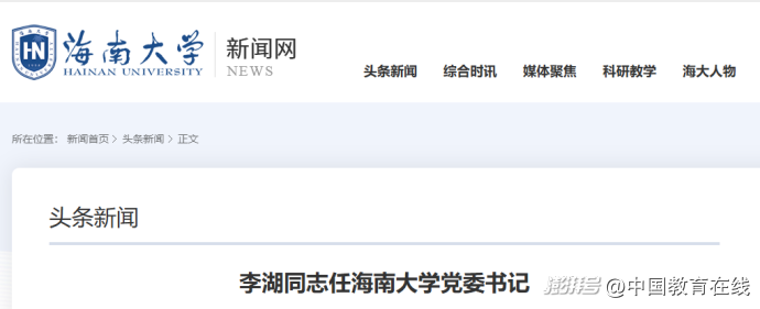 8月25日,海南大學(xué)召開干部大會。海南省人民政府副省長李鋒出席會議并講話。省委組織部有關(guān)負(fù)責(zé)同志宣布省委決定:李湖同志任海南大學(xué)黨委委員、常委、書記。