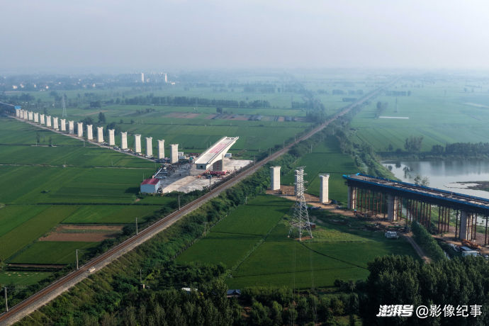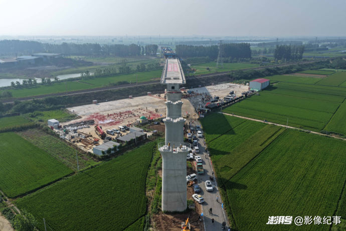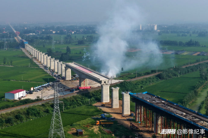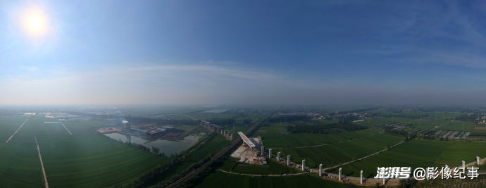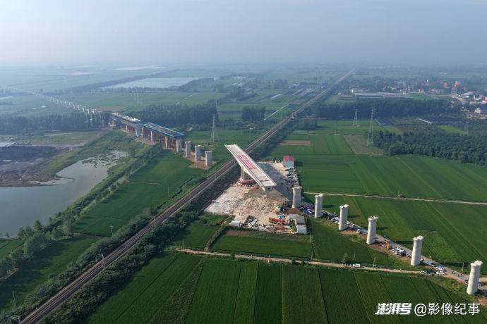 震撼!航拍濰宿高鐵上跨膠新鐵路T構(gòu)梁轉(zhuǎn)體
