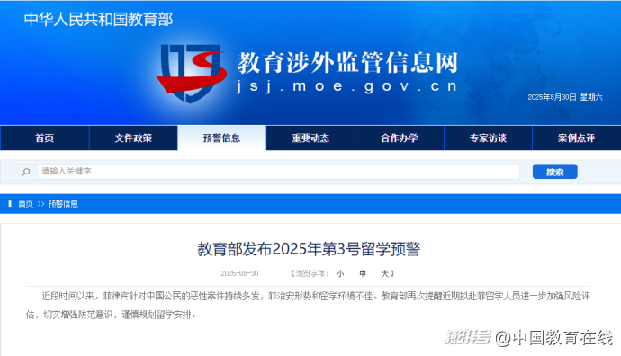 教育部發(fā)布2025年第3號(hào)留學(xué)預(yù)警