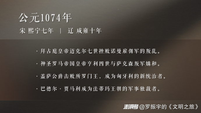 你好,這里是《文明之旅》。歡迎你穿越到公元1074年,大宋熙寧七年,大遼咸雍十年。