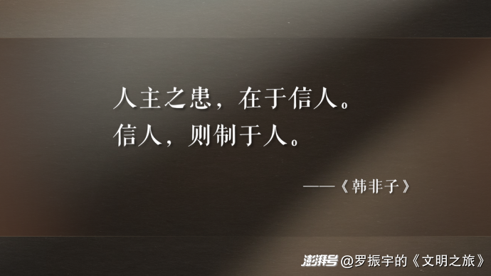 《韓非子》這本書,是我見過的人類歷史上最沒有道德底線的書。那真是,為了君主的利益,無所不用其極。它立論的基礎(chǔ),其實就是剛才那個寓言里說到的君主的處境:你處于絕對的孤獨、絕對的劣勢中,要是不用我教你的這套技術(shù),你會死無葬身之地的。