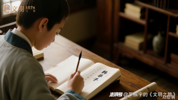 《韓非子》這本書,大概十萬字出頭,毛筆手抄一遍,怎么也得花上一個月吧。挺辛苦的。