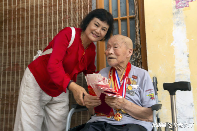 在清豐縣大流鄉(xiāng)北岳莊村,常住四閨女家的抗戰(zhàn)老兵、102歲的夏文藝接過志愿者送來的禮品禮金后無比開心,對(duì)谷慧霞說,“你們這些志愿者逢年過節(jié)都來看我,真是太感謝了!”