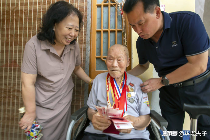 當(dāng)?shù)貝坌娜耸俊㈠ш?yáng)市光明路橋建設(shè)有限公司董事長(zhǎng)、總經(jīng)理?xiàng)蠲婪逋跤袂鄯驄D多年來做社會(huì)公益活動(dòng),就像他們?nèi)粘9ぷ魃钜粯?,夫唱婦隨、形影不離。每次看望抗戰(zhàn)老兵,禮金都是每人一把手(500元)。作為公益活動(dòng)拍攝記錄者,楊總經(jīng)常與本人說道,關(guān)愛抗戰(zhàn)老兵就是在和時(shí)間賽跑。