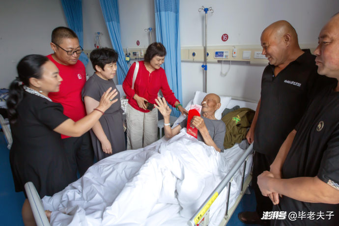 7月14日下午,河南關(guān)愛抗戰(zhàn)老兵志愿者豫北團(tuán)隊(duì)創(chuàng)始人谷雨飛歌偕同濮陽(yáng)志愿者尹喜良、安陽(yáng)志愿者王霞、臺(tái)前志愿者岳春英來到河南省人民醫(yī)院豫東北醫(yī)院(臺(tái)前縣新區(qū)人民醫(yī)院),看望慰問臥病在床的打漁陳鄉(xiāng)抗戰(zhàn)老兵、95歲的黨紀(jì)坤老人。