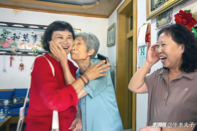 7月14日上午,濮陽(yáng)市中原油田家屬院抗戰(zhàn)老兵、鐵人王進(jìn)喜入黨介紹人滿應(yīng)科(已故)家里,滿局長(zhǎng)的老伴、90歲的李慧中一看見豫北團(tuán)隊(duì)負(fù)責(zé)人谷慧霞就像親閨女一樣,抱起來就“親”個(gè)不夠:“阿姨好想你……”隨谷團(tuán)長(zhǎng)同行的志愿者王玉芹看了此情此景高興得不得了。