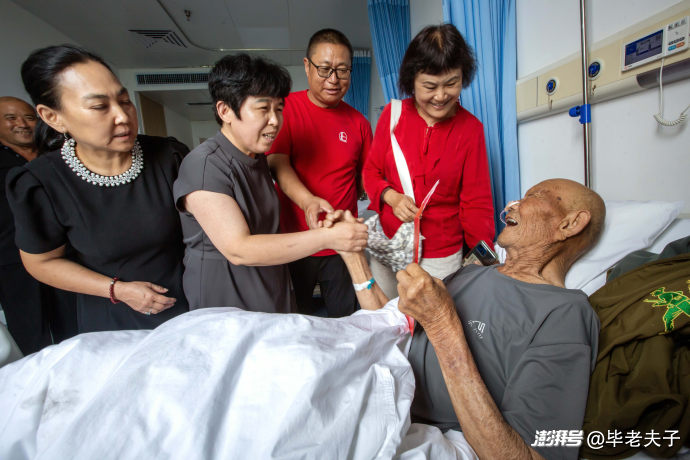 來自天津的愛心人士、安陽(yáng)林州籍企業(yè)家李沛宸帶著妻兒看望抗戰(zhàn)老兵夏文藝,可謂是“家庭總動(dòng)員”了。