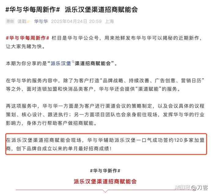 而背書,是一種信任捷徑。現(xiàn)在華與華的官號上,依然不少靠招商加盟起盤的餐飲客戶。