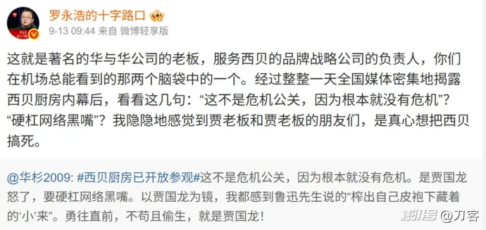 回到這次老羅和西貝的事件,寫完稿子的時候,我得知華與華已經(jīng)跟老羅道歉了。