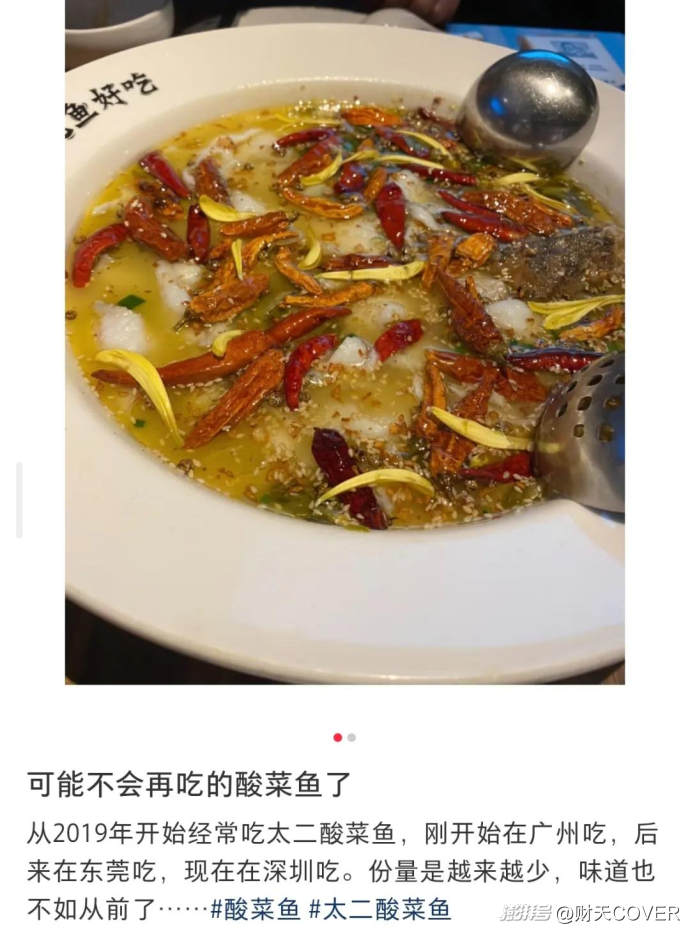 “又貴量又少”,是太二酸菜魚被食客們頻繁吐槽的點(diǎn)。