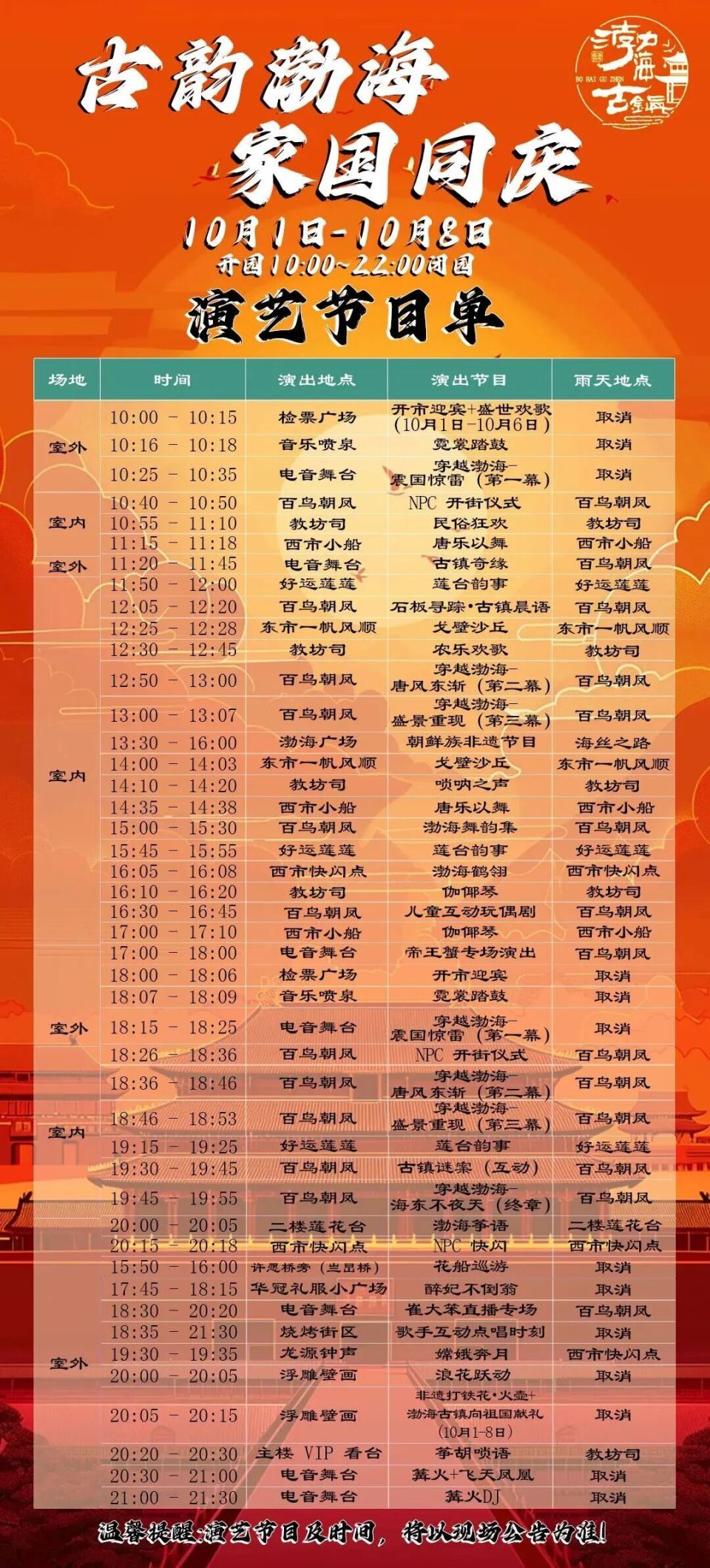 地點:牌樓廣場、遼皇觀魚臺、華夷同風(fēng)院、捺缽島、嗨享樂園