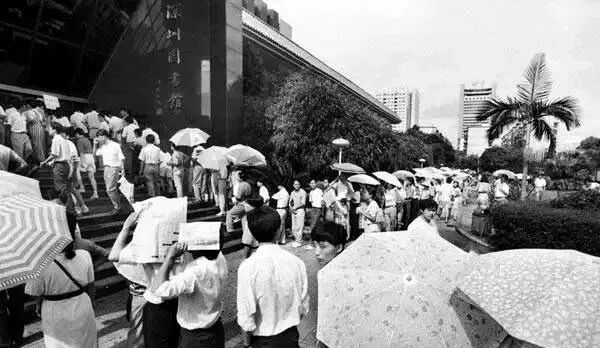1994年深圳圖書館門口排隊(duì)的人。資料圖