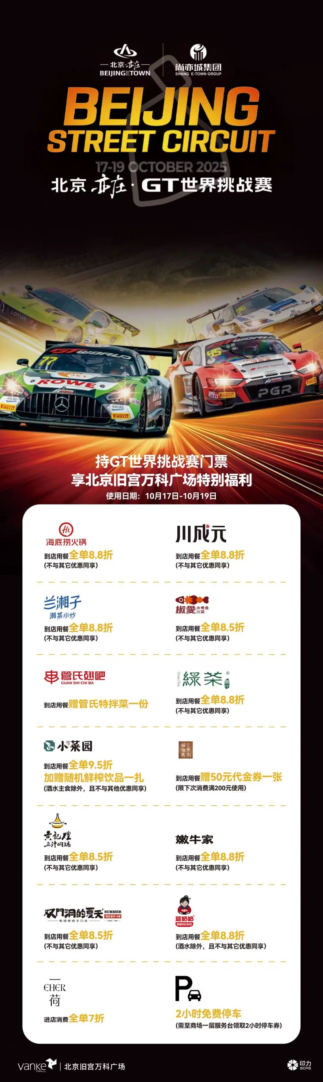 優(yōu)惠需憑GT賽完整實(shí)體票根/電子票根核銷,復(fù)印件無(wú)效;每個(gè)商圈優(yōu)惠可單獨(dú)參與,具體細(xì)則以商戶現(xiàn)場(chǎng)說(shuō)明為準(zhǔn);福利有效期與賽事周期聯(lián)動(dòng),錯(cuò)過(guò)再等一年,記得及時(shí)使用!