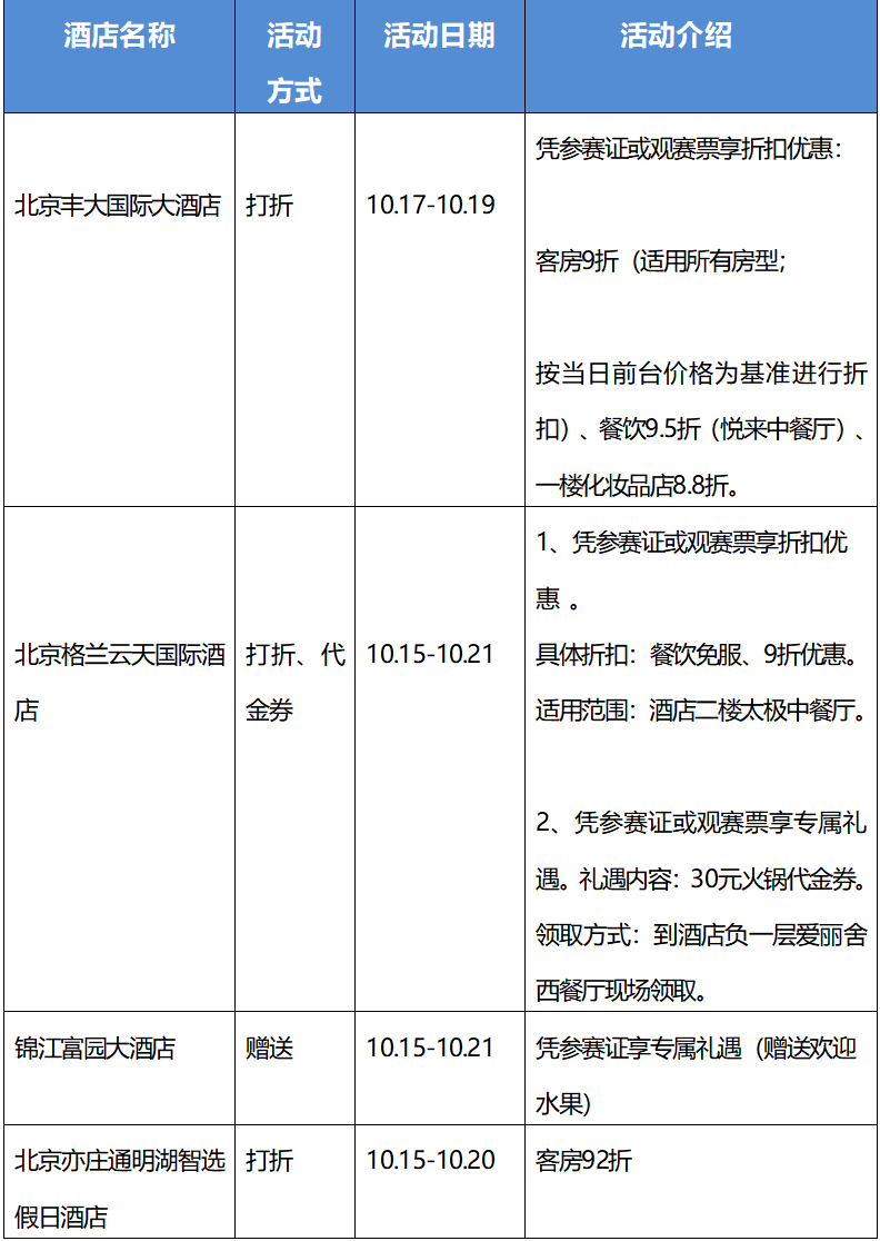 各酒店活動(dòng)匯總?cè)缦拢?/p>