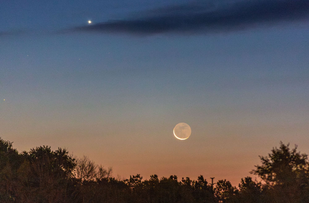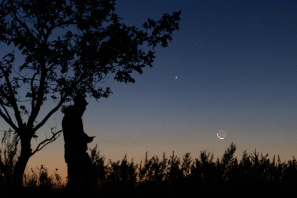 10月20日在黑龍江省齊齊哈爾市拍攝的啟明星伴月。新華社發(fā)(王勇剛攝)