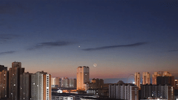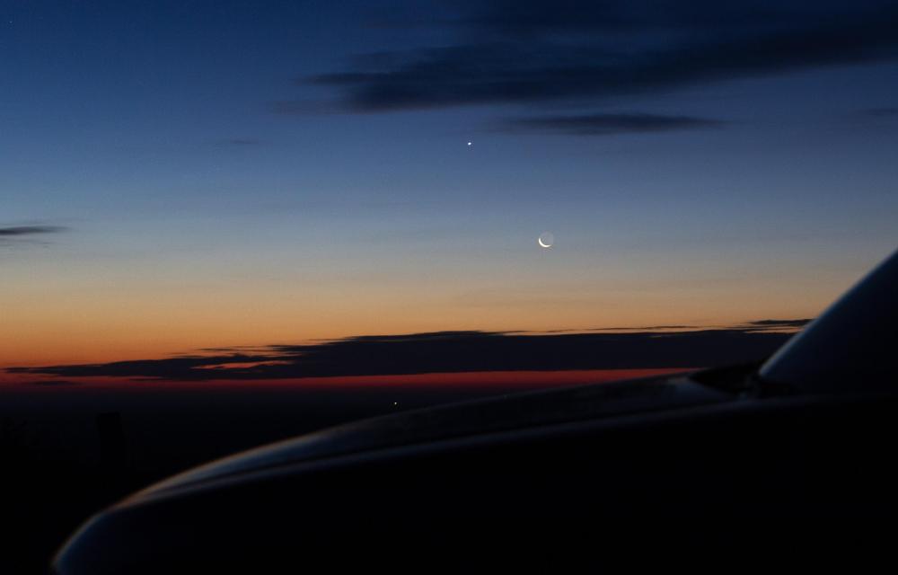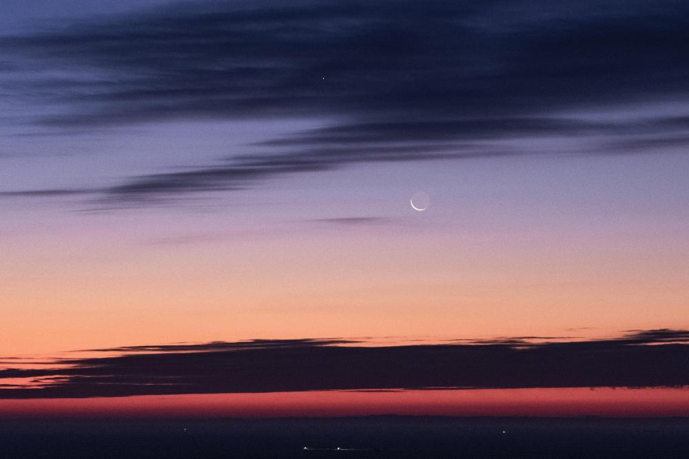 10月20日在黑龍江省富錦市拍攝的啟明星伴月。新華社發(fā)(庚喜慶攝)